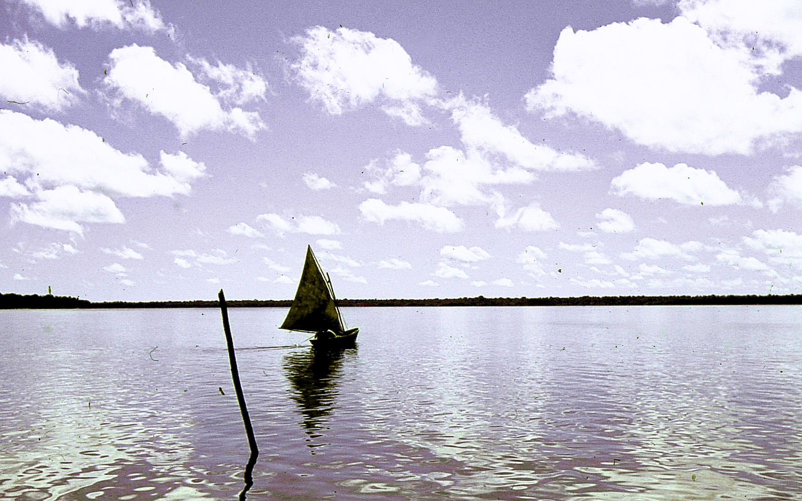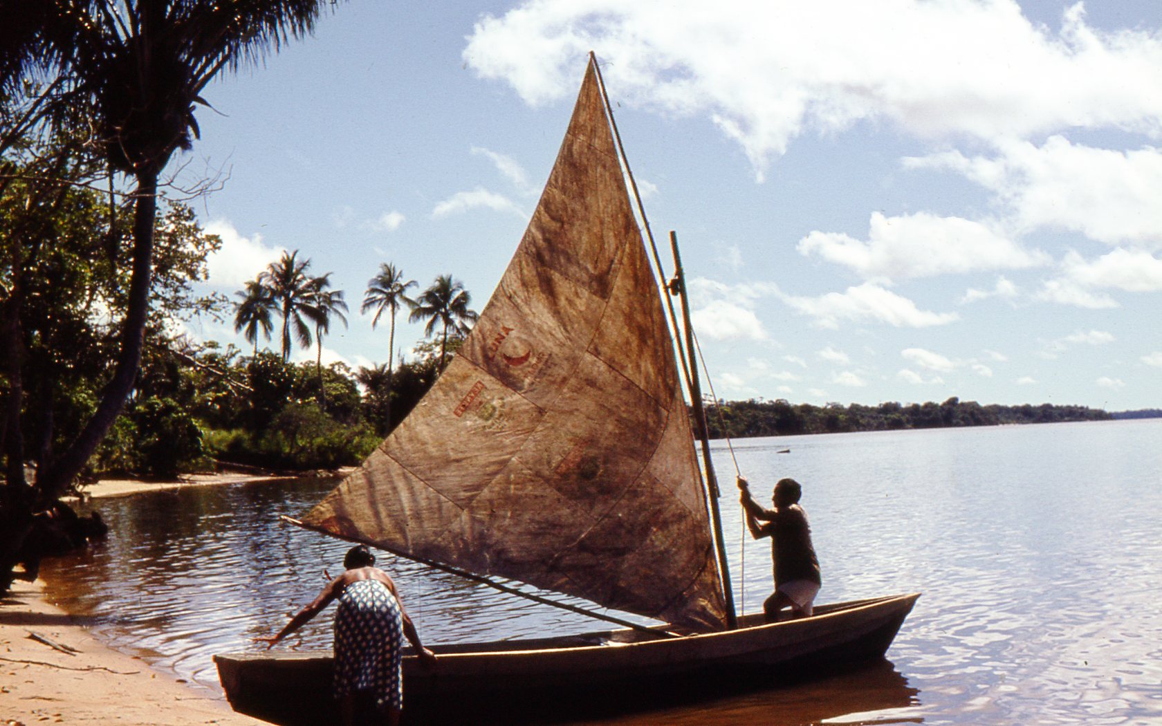 In Albina het dagelijks leven, hier ook een zeilboot gezien.