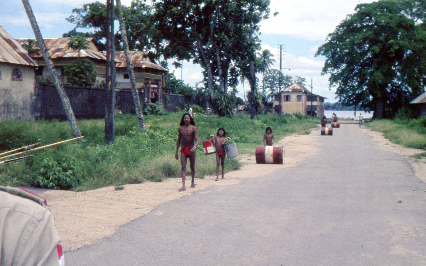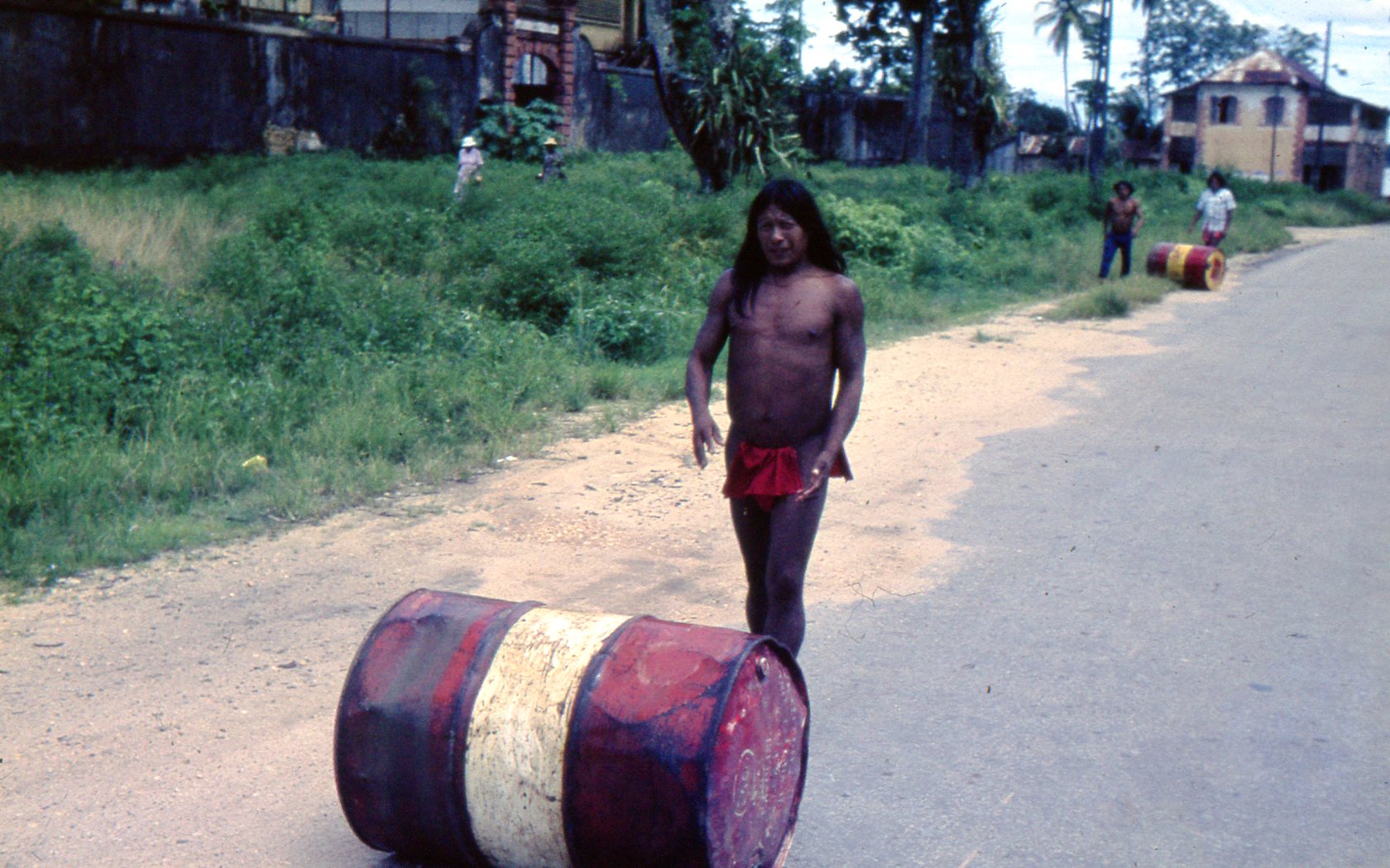 In Saint Laurent de oude gevangenis gezien en Wajana indianen die met benzine drums liepen.