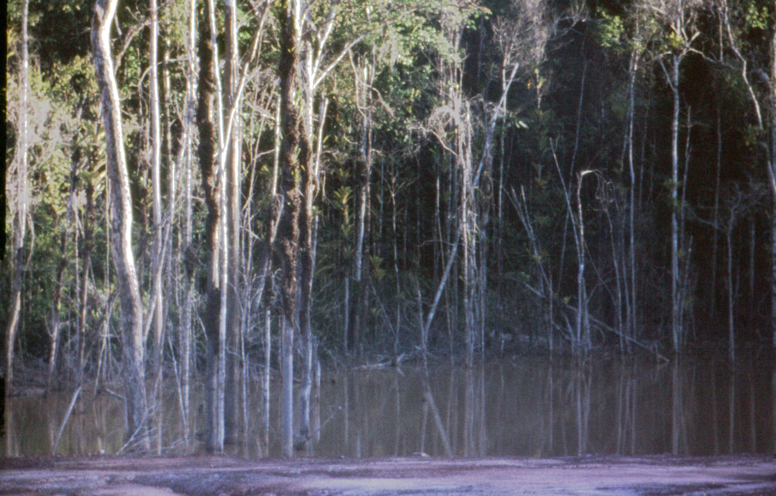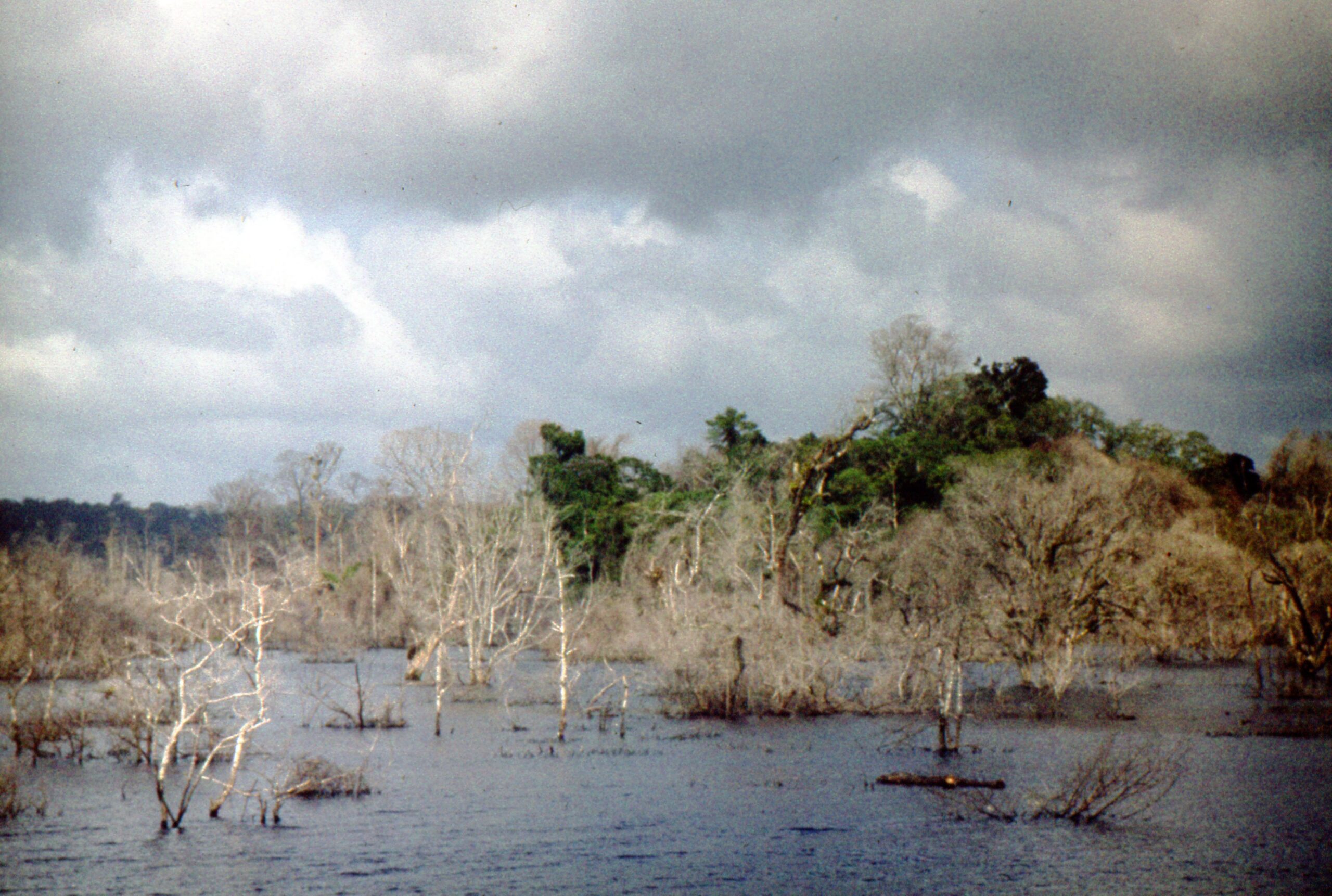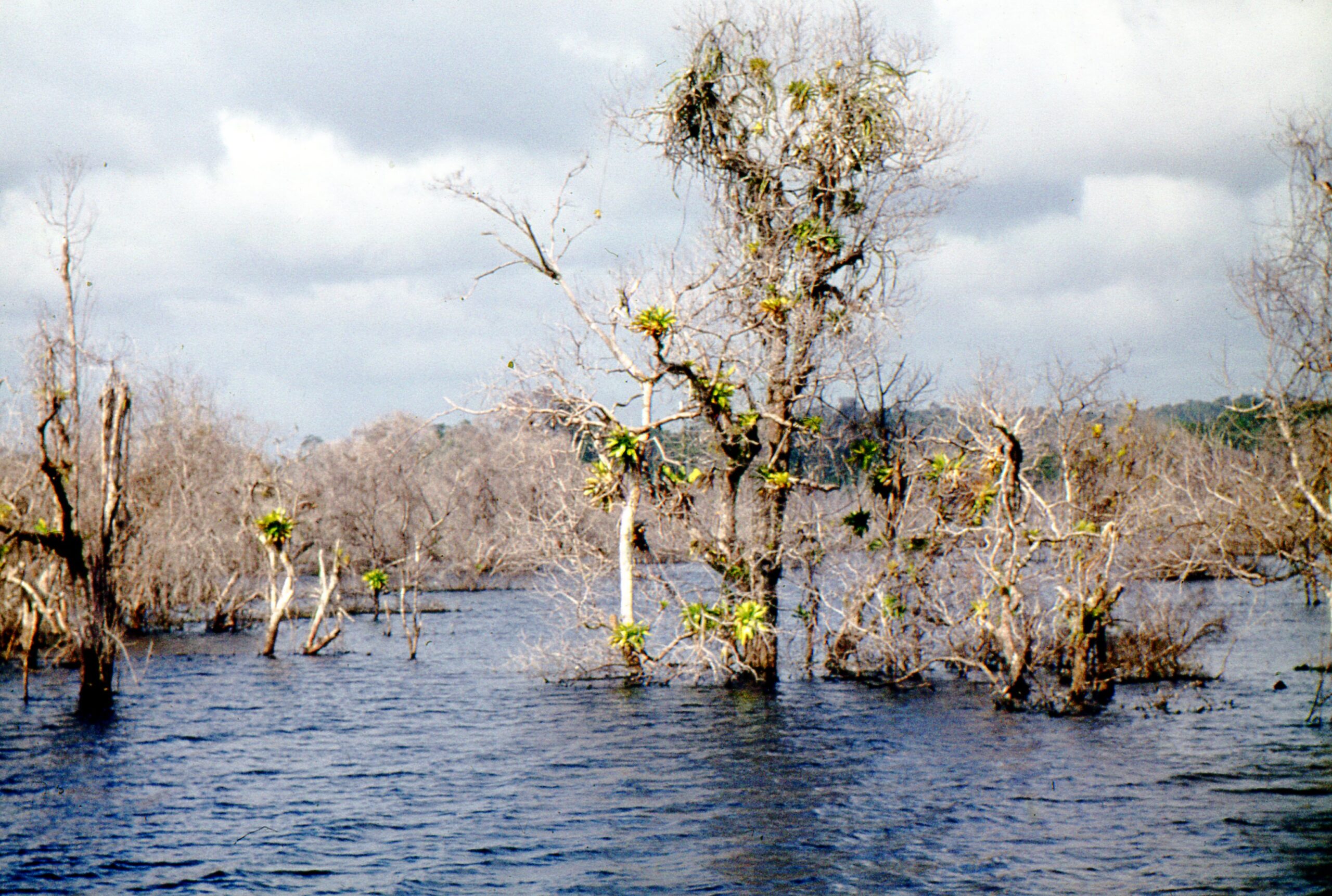 Alles is onder het water verdwenen, alleen de spits van het hoogste gebouw, de kerk komt nog boven het water uit.
